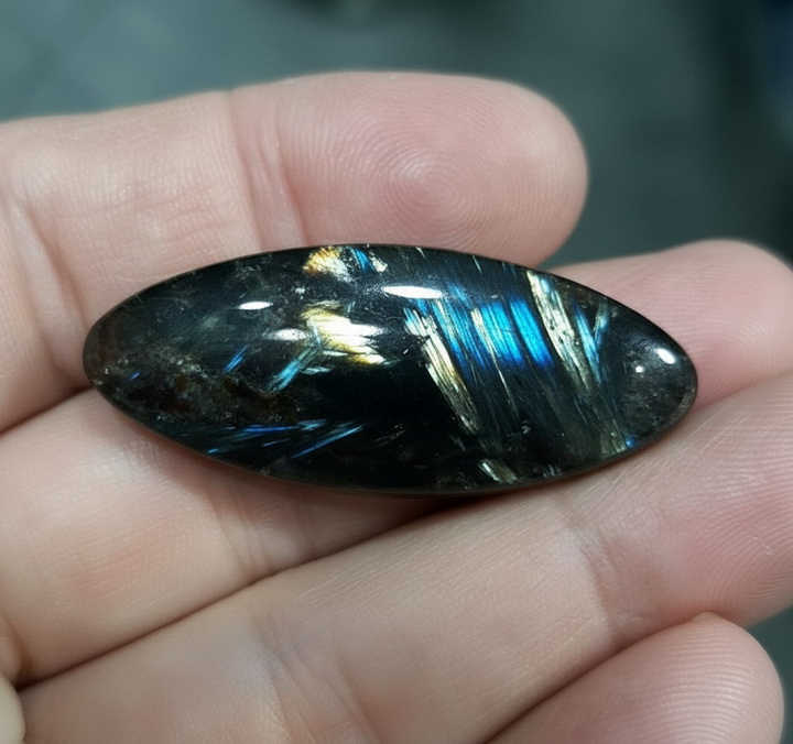 Домашняя проверка без риска — это свет и лупа. Поворачивайте камень медленно: у качественного нуумита зоны иризации включаются и выключаются согласованно, «слоями», а не как случайная россыпь блёсток.